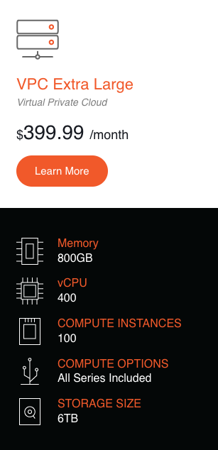 Develop and deploy powerful websites and apps with ALTERNcloud’s Virtual Private Cloud (VPC) packages. With a multi-tenant advanced Cloud configuration, ALTERNcloud’s VPC XL provides customers with a fully virtualized environment and immediate provisioning. Featuring 400 shared and dedicated vCPUs, an extensive compute templates library, and a Cloud core managed by ALTERNcloud, VPC XL grants users advanced self-service versatility. Learn more.